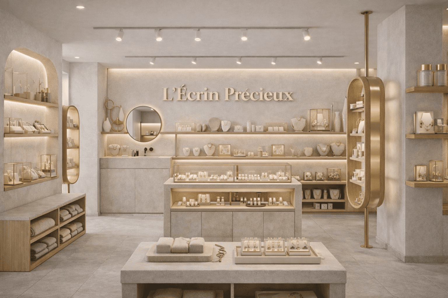 Absolument. Bien que notre mobilier soit modulaire pour assurer la flexibilité, chaque emplacement (vitrine, alcôve ou îlot) est conçu pour devenir un véritable écrin à votre image. Nous travaillons avec vous sur la scénographie pour que votre univers visuel soit respecté et mis en valeur dès le premier regard.